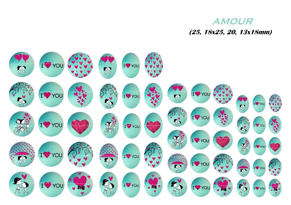 Images digitales pour cabochons à imprimer thème Amour Saint Valentin