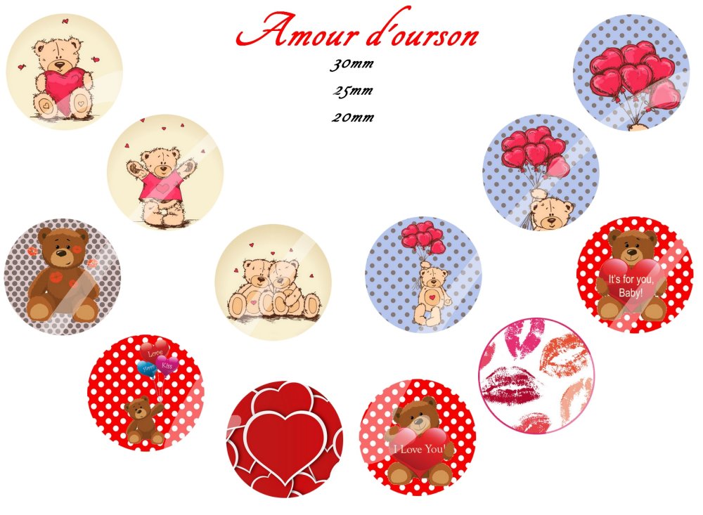 Images digitales pour cabochons à imprimer thème Amour Saint Valentin