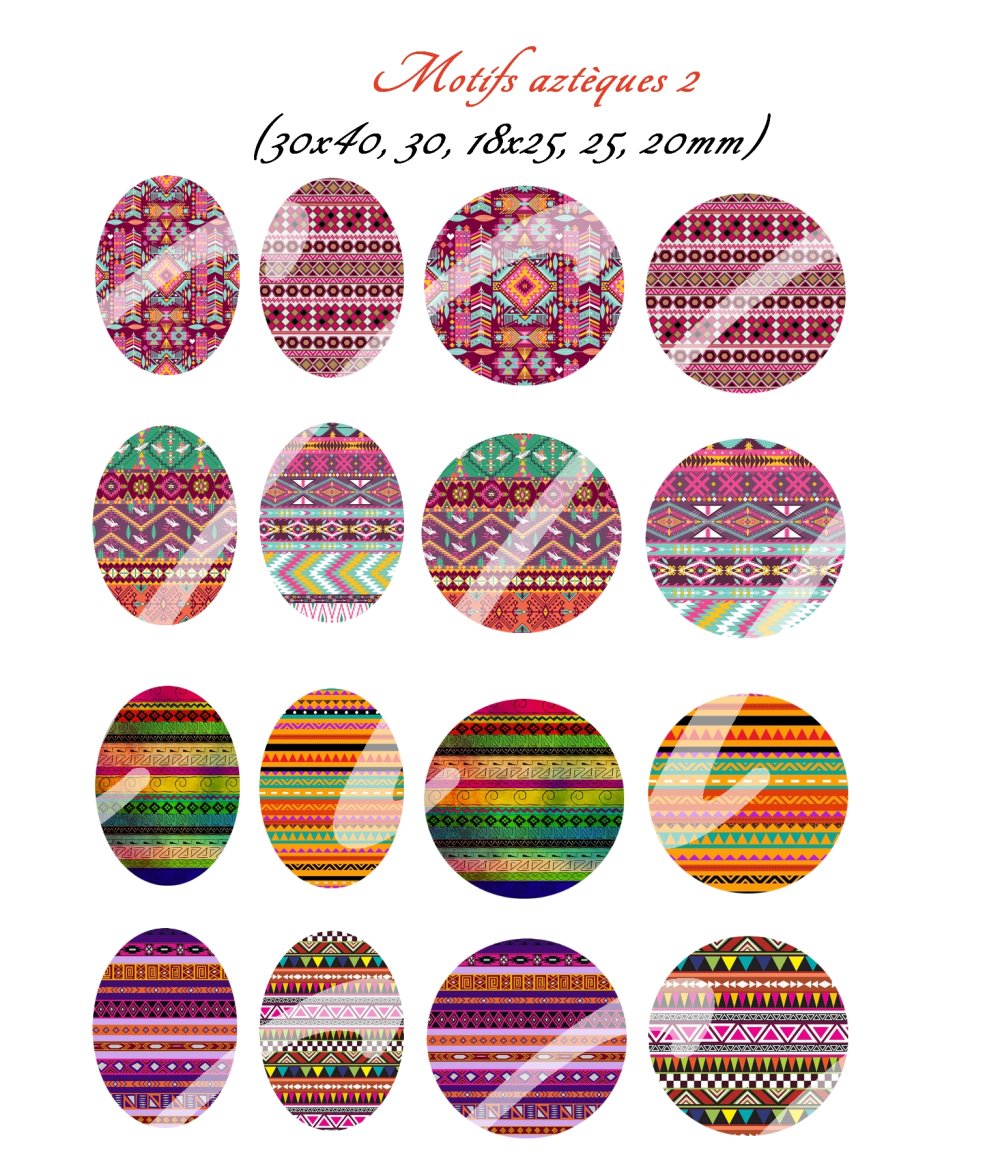 Images digitales pour cabochons à imprimer thème Aztèque ethnique