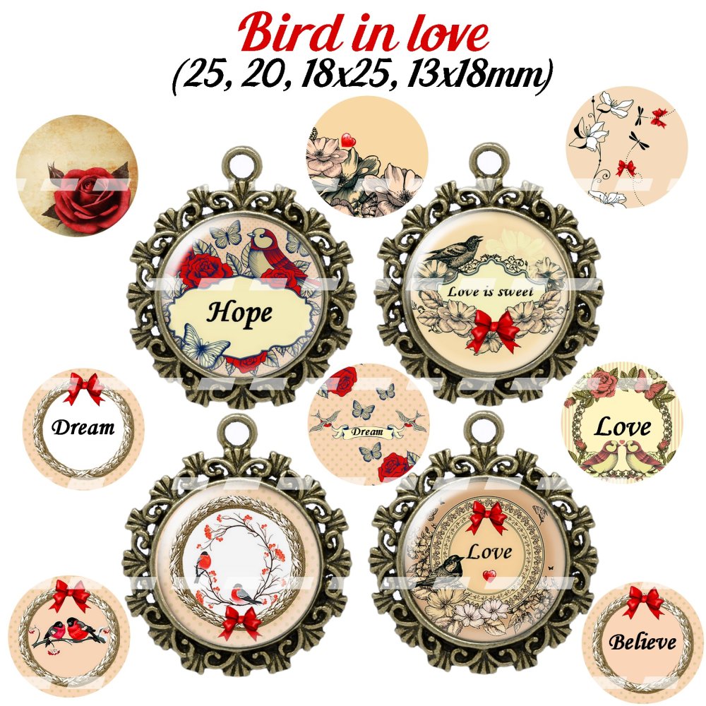 Images digitales pour cabochons à imprimer thème oiseaux amour
