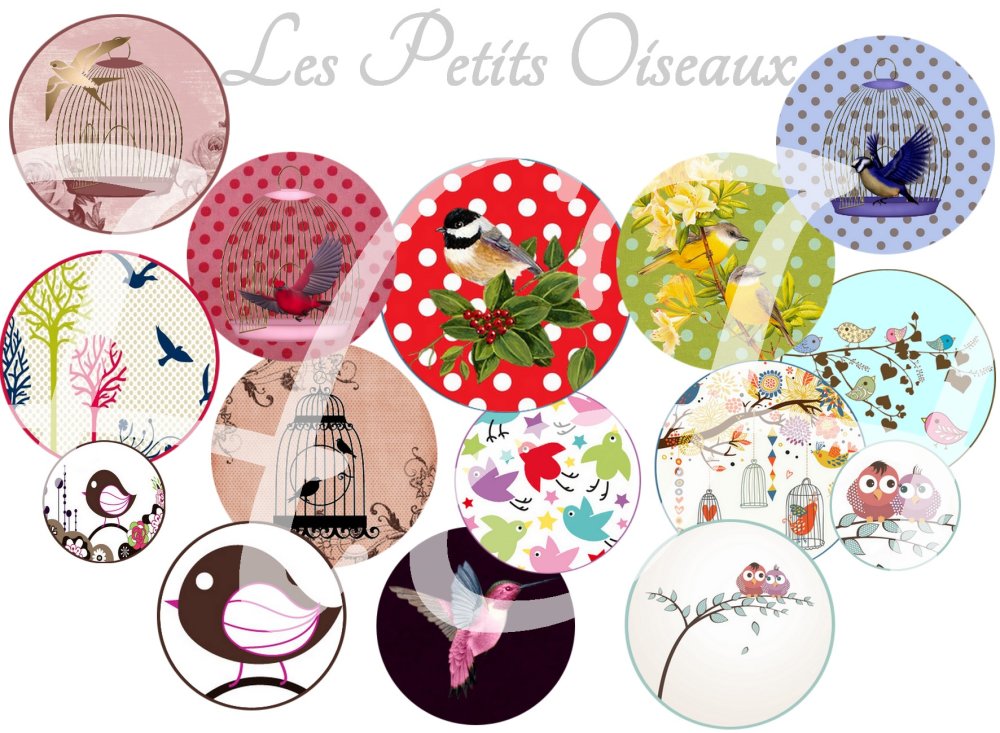 Images digitales pour cabochons à imprimer thème oiseaux