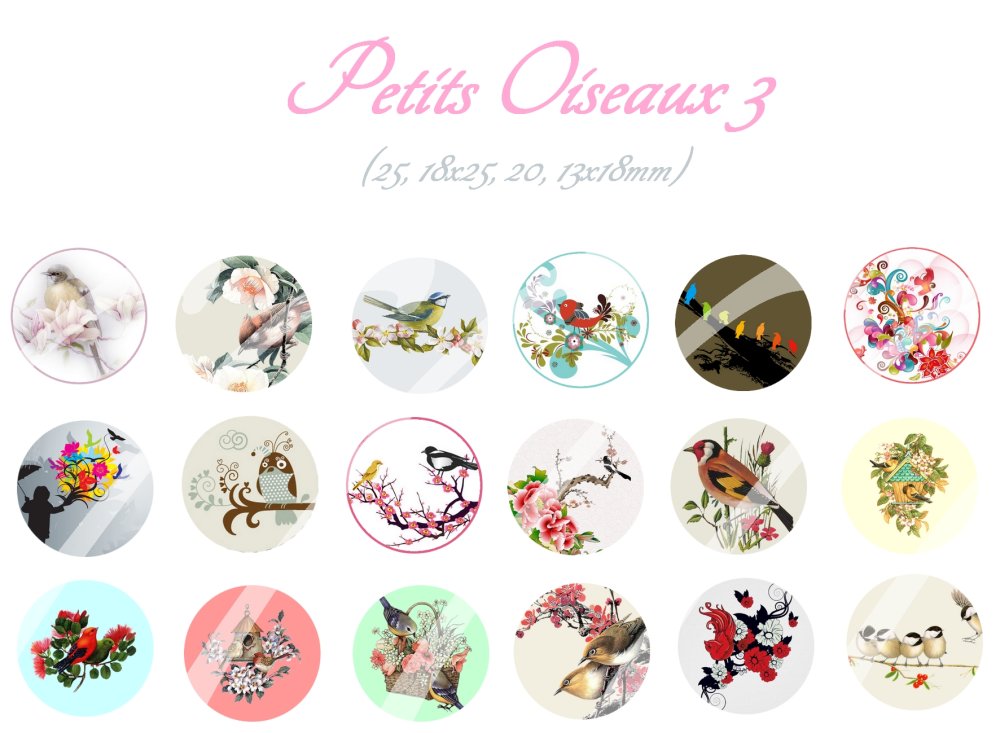 Images digitales pour cabochons à imprimer thème oiseaux