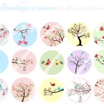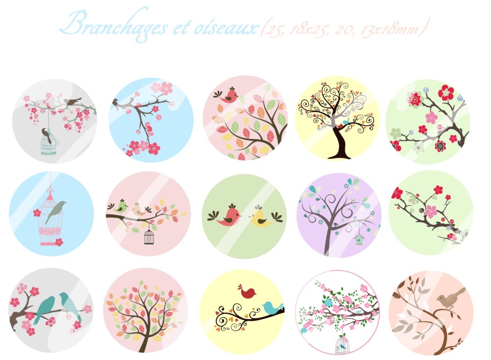 Téléchargement immédiat: images digitales pour cabochons à imprimer motifs branchages oiseaux