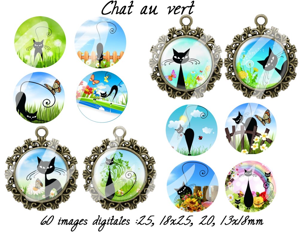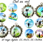 Téléchargement immédiat: images digitales pour cabochons à imprimer chat au vert