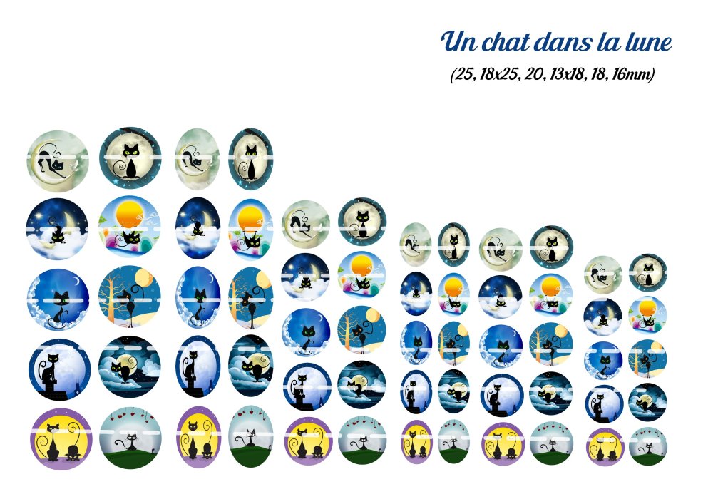Téléchargement immédiat: images digitales pour cabochons à imprimer chat lune