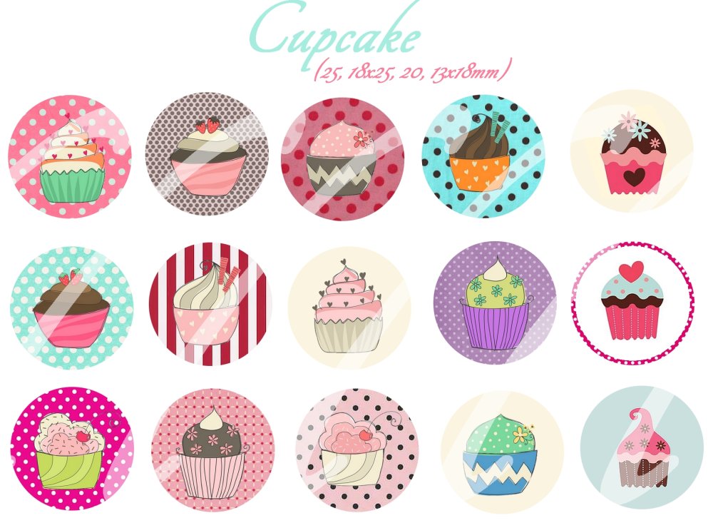 Téléchargement immédiat: images digitales pour cabochons à imprimer cupcake