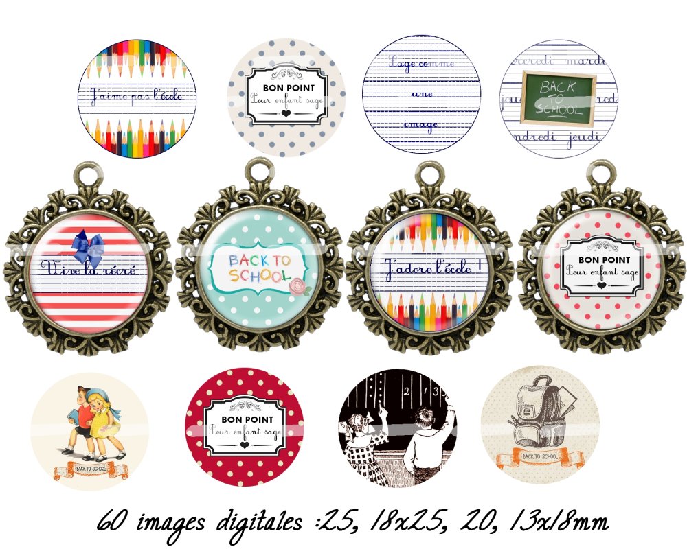 Téléchargement immédiat: images digitales pour cabochons à imprimer école