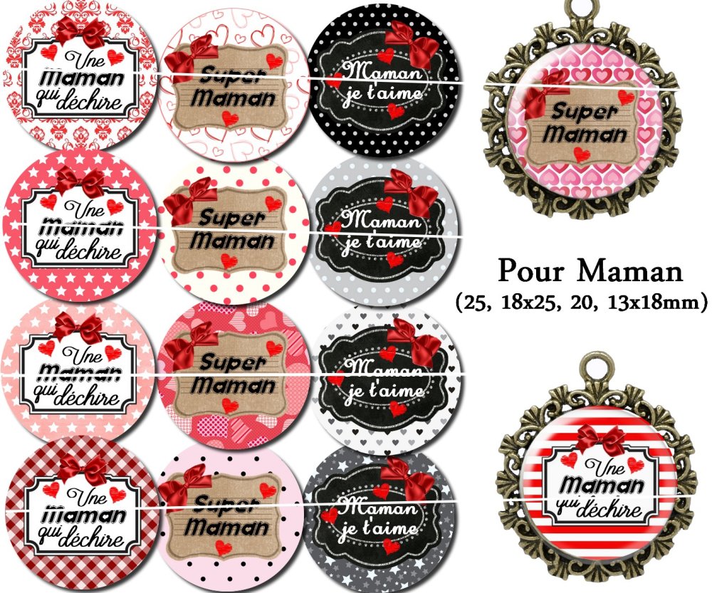 Téléchargement immédiat: images digitales pour cabochons à imprimer maman