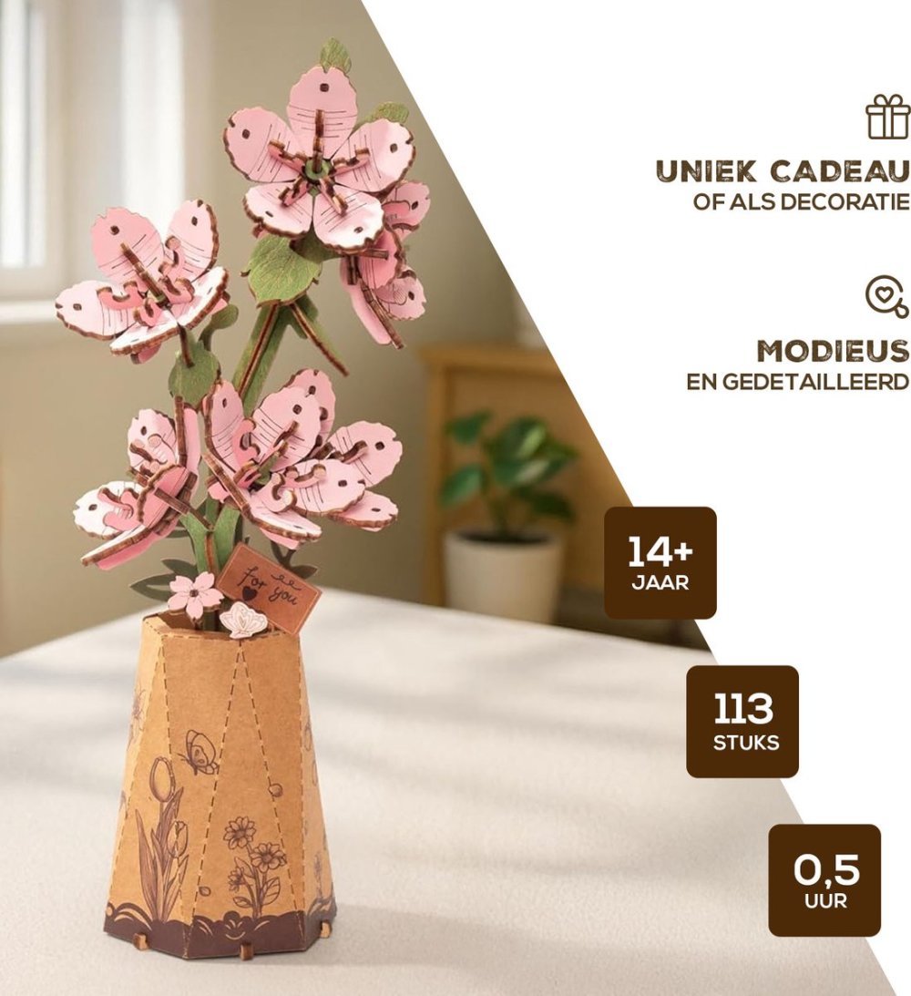 Bienvenue dans le monde enchanteur des puzzle 3D avec la Plante en bois Sakura de la marque Robotime, une création unique qui allie la beauté naturelle du Sakura à l'art du puzzle en bois. Ce kit de montage vous permet de créer votre propre fleur Sakura en 3D, apportant une touche de nature et de sérénité à votre intérieur.