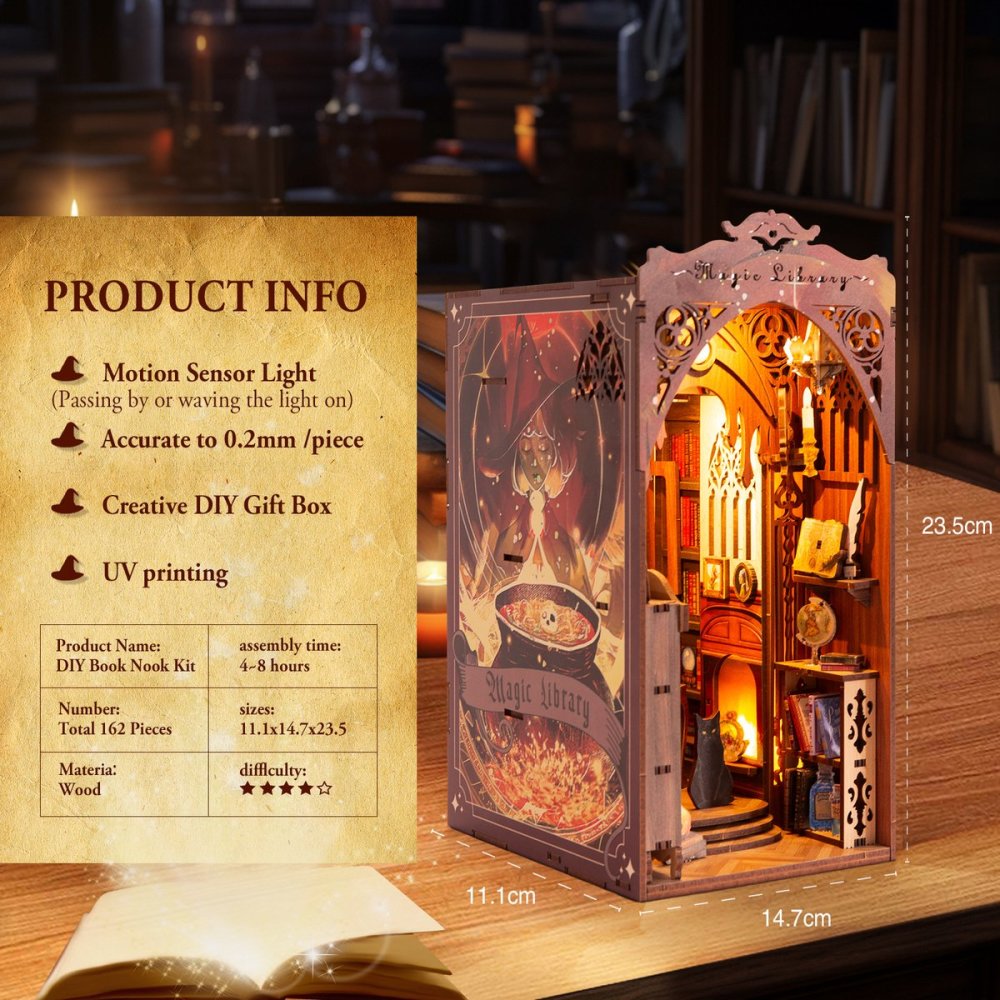 Kit Serre Livre Book Nook Magic Library avec capteur de lumière LED - DIY