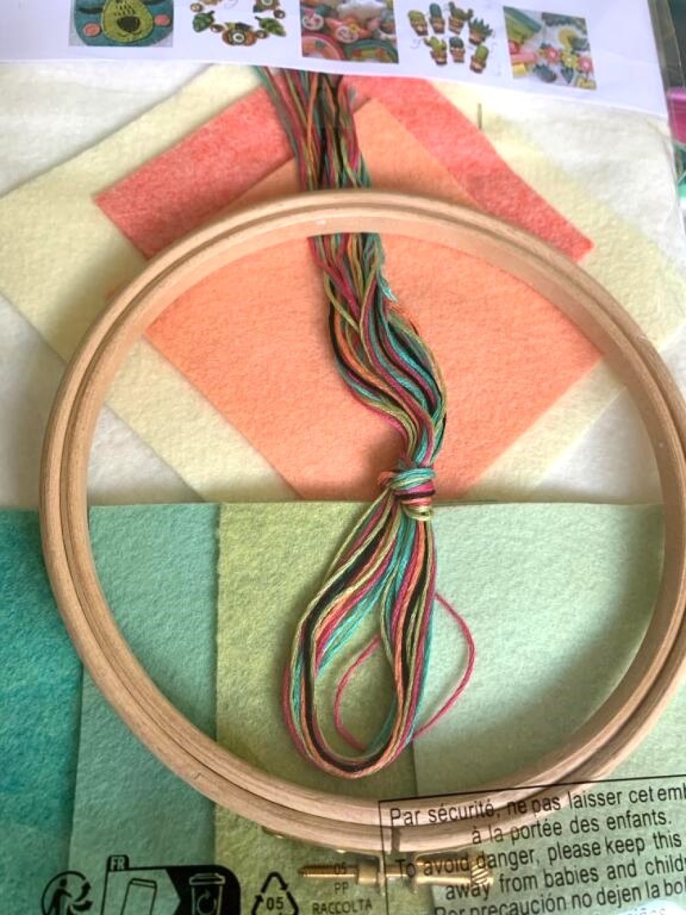 Le kit comprend 8 coloris de feutrine, l'aiguille, les fils à broder, le tambour à broder de 15 cm de diamètre, les explications et gabarits détaillés.