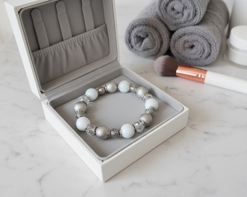 Kit bracelet fil élastique perles blanches et métal argentées
