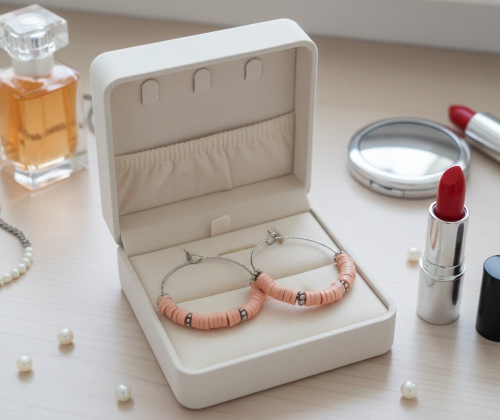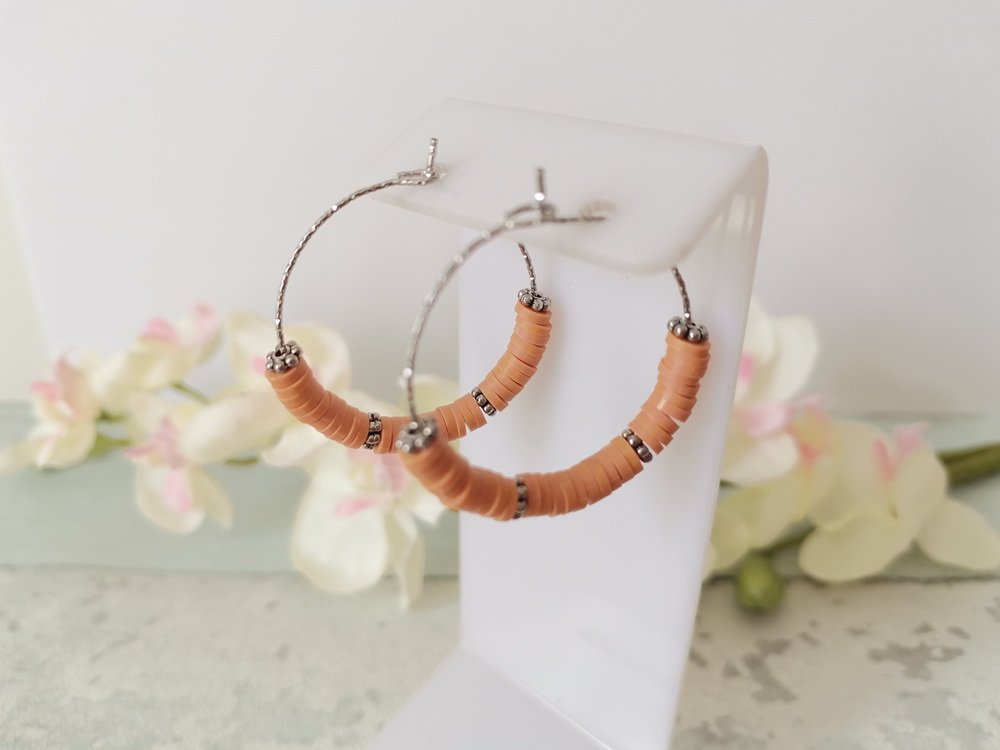 kit boucles d'oreilles créoles et perles Heishi très facile à réaliser, ne nécessite aucune pince