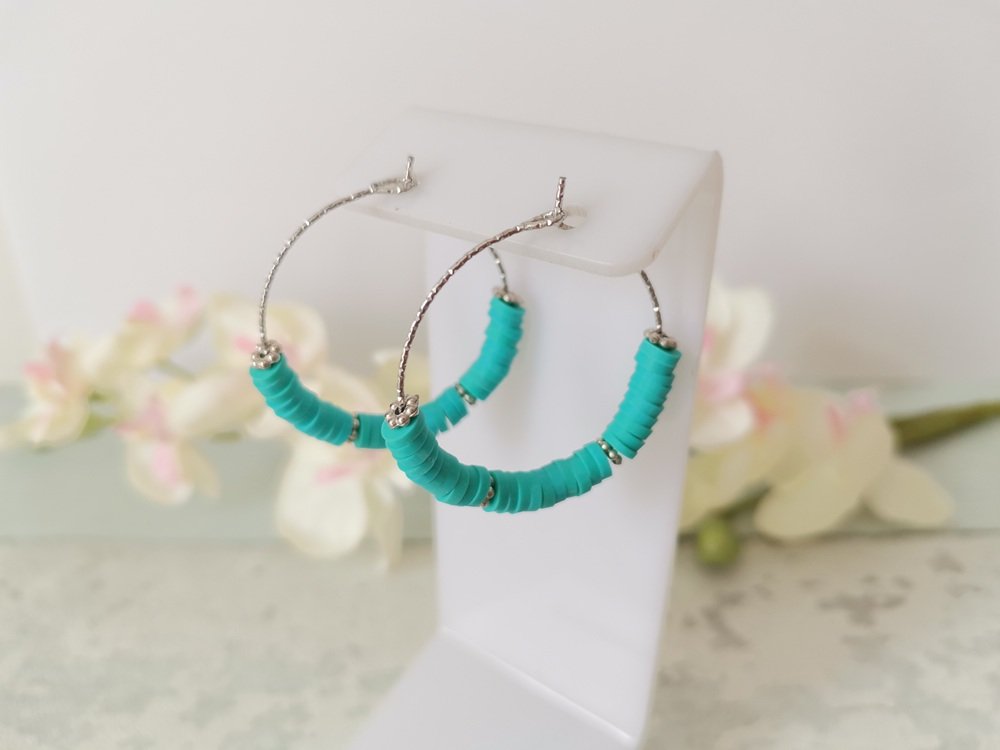 kit boucles d'oreilles créoles et perles Heishi très facile à réaliser, ne nécessite aucune pince