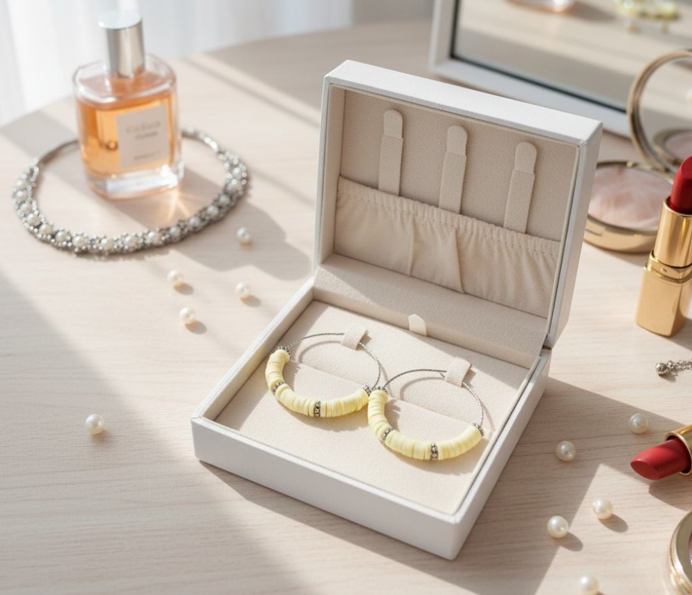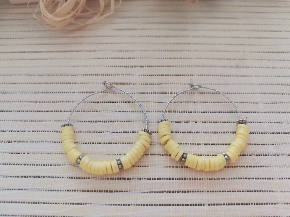 kit boucles d'oreilles créoles et perles Heishi très facile à réaliser, ne nécessite aucune pince