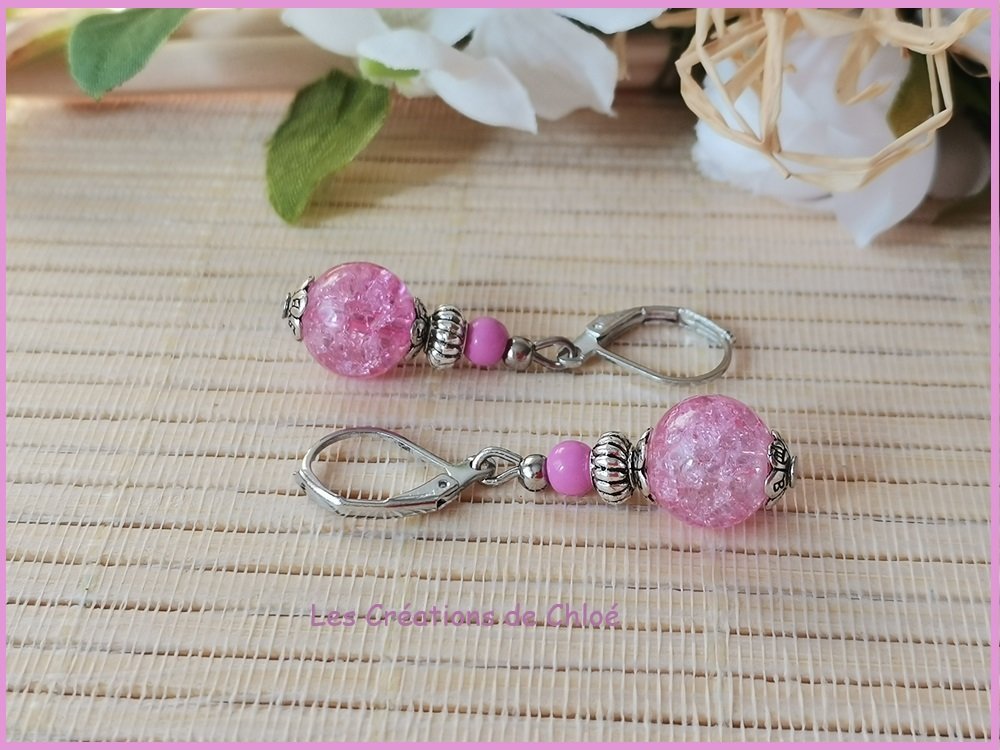 Kit de boucles d'oreilles rose et argent mat