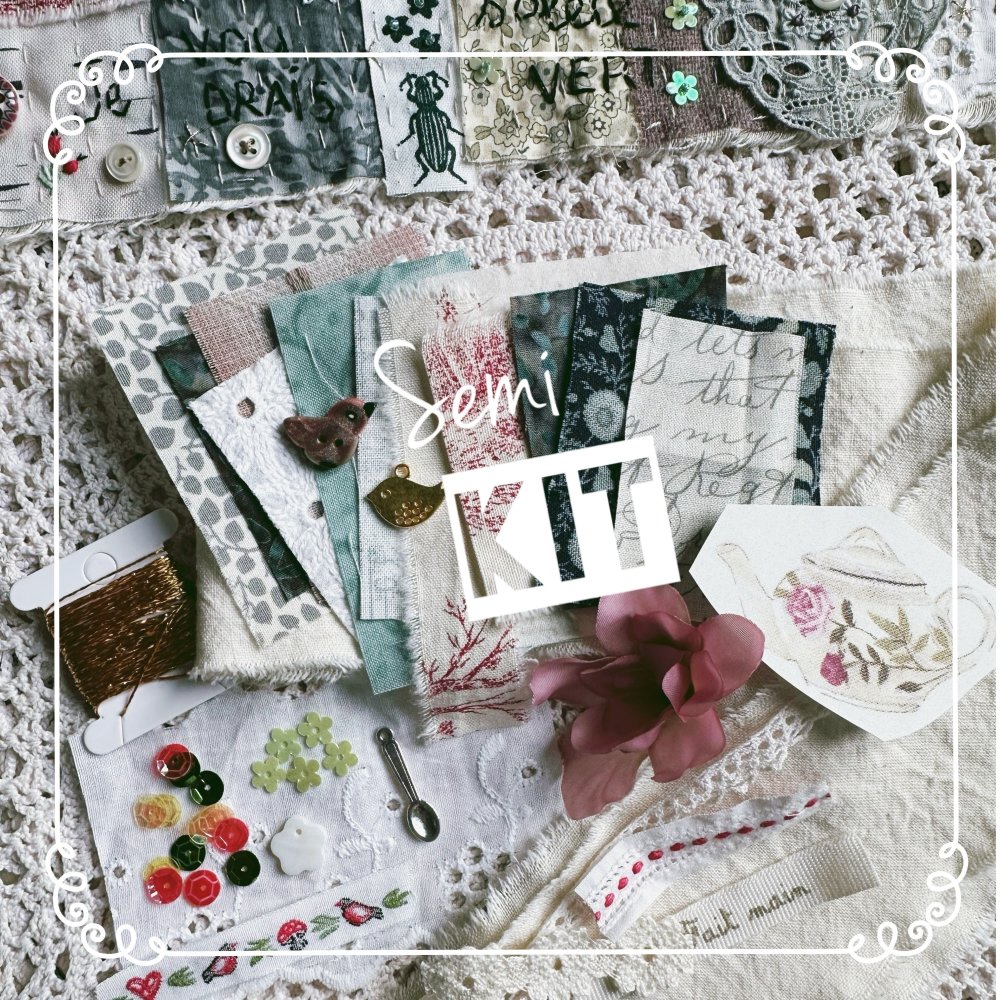 Le kit contient 1 bande de drap ancien écru (6 x 180 cm) + des petites pièces de tissus en coton aux teintes hivernales + des sequins + des dentelles, des galons + une fleur à appliquer + des jolis boutons oiseaux + un charm cuillère + un transfert théière + une fiche de conseils.