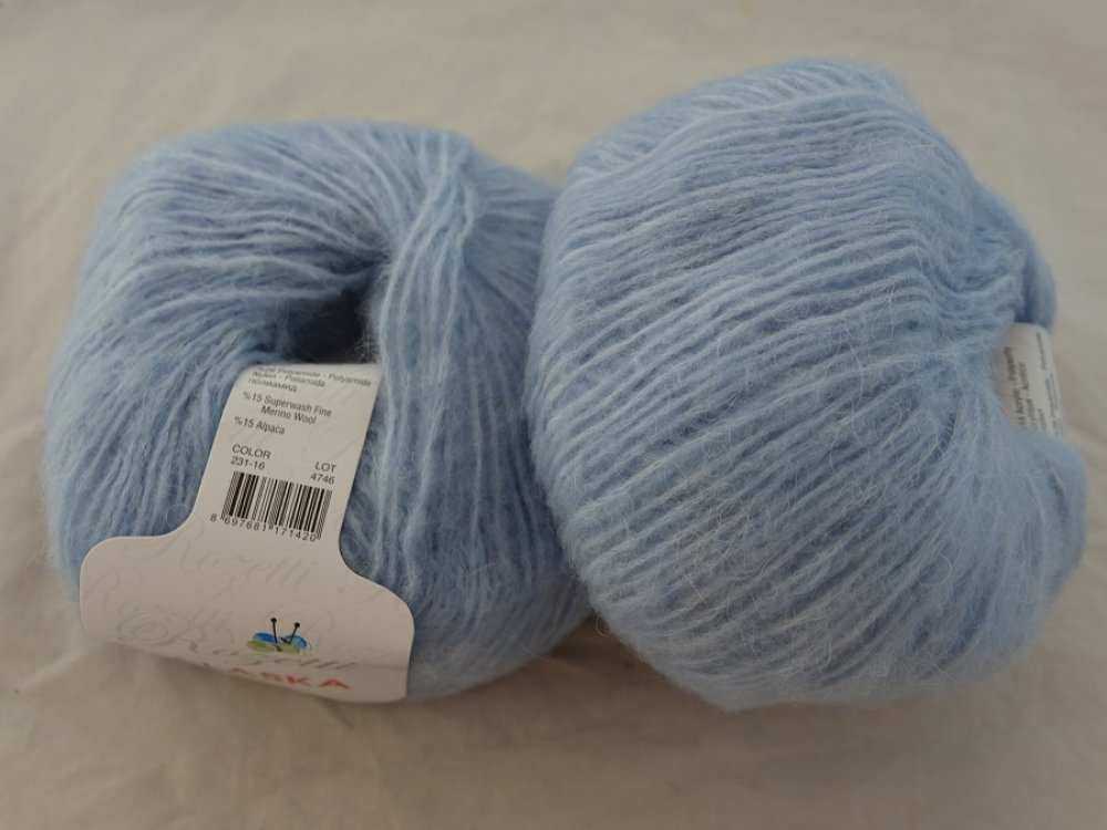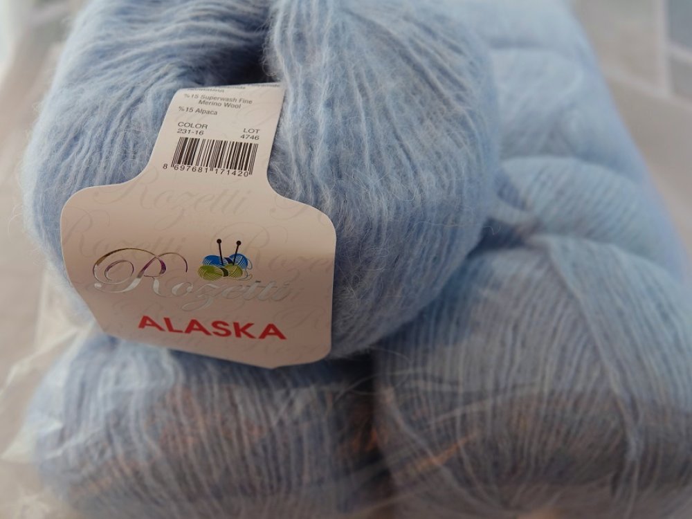 5 Pelotes de 50 gr Alaska bleu ciel 231-16 de la marque rozetti 15% laine mérinos 15% alpaga