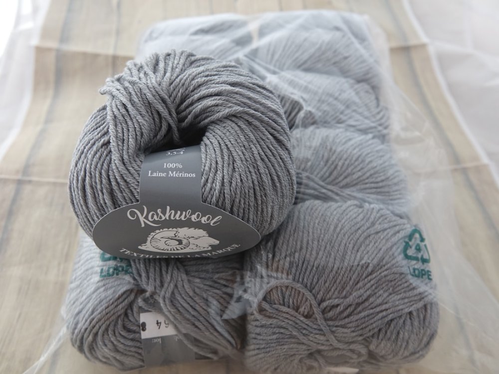 pure Laine Mérinos 5 Pelotes kashwool gris flanelle 664 textiles de la marque 125 mètres par 50 gr
