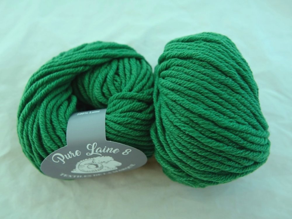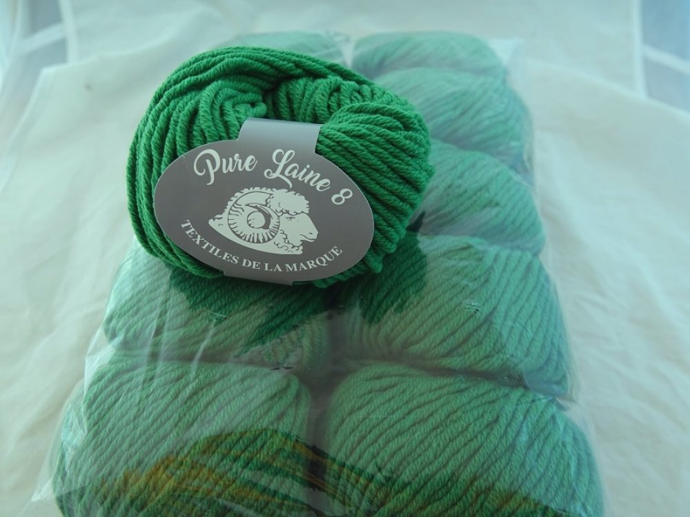 5 pelotes 50 gr 100% Pure Laine N° 8 vert prairie
