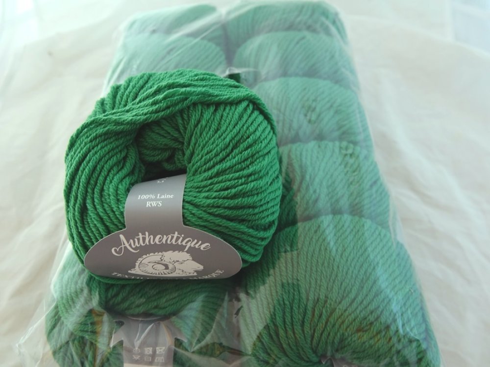 5 Pelotes 50 gr 100% Laine RWS AUTHENTIQUE vert prairie 526 textiles de la marque