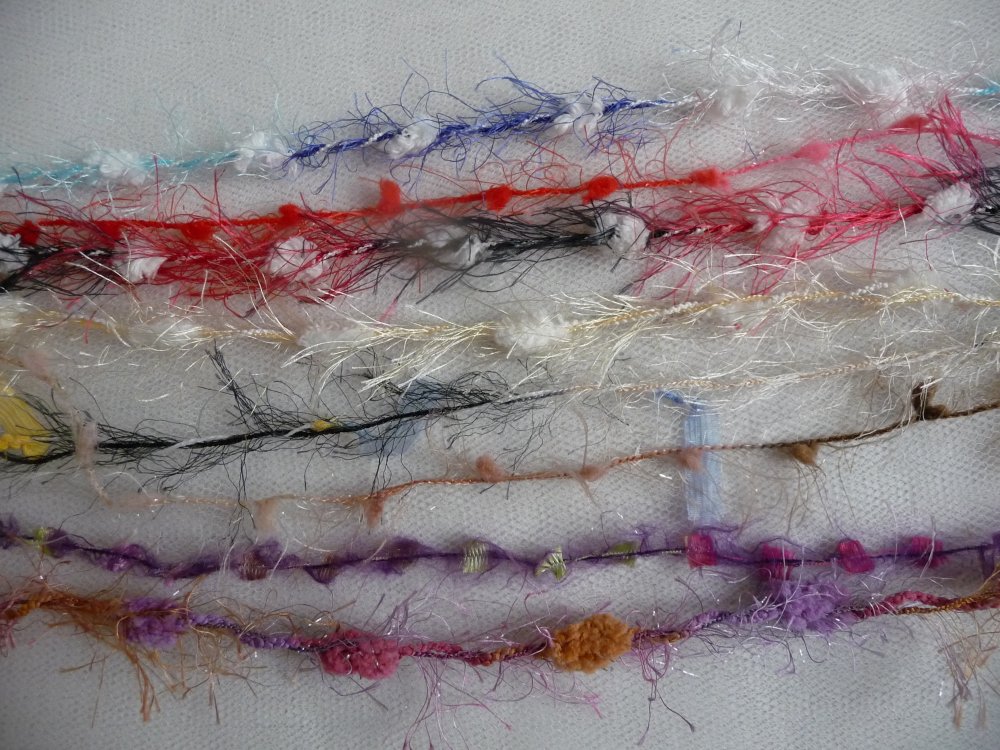 Je vous propose un très bel assortiment de différents fils de laine ,aspects et coloris variés, d'une longueur de 1,50 m chacun.