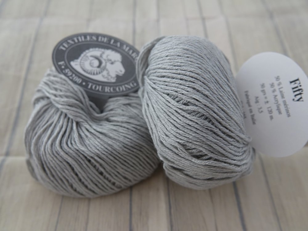 50% Laine Mérinos 5 Pelotes fifty gris flanelle 165 textiles de la marque 50% laine mérinos,50 %acrylique