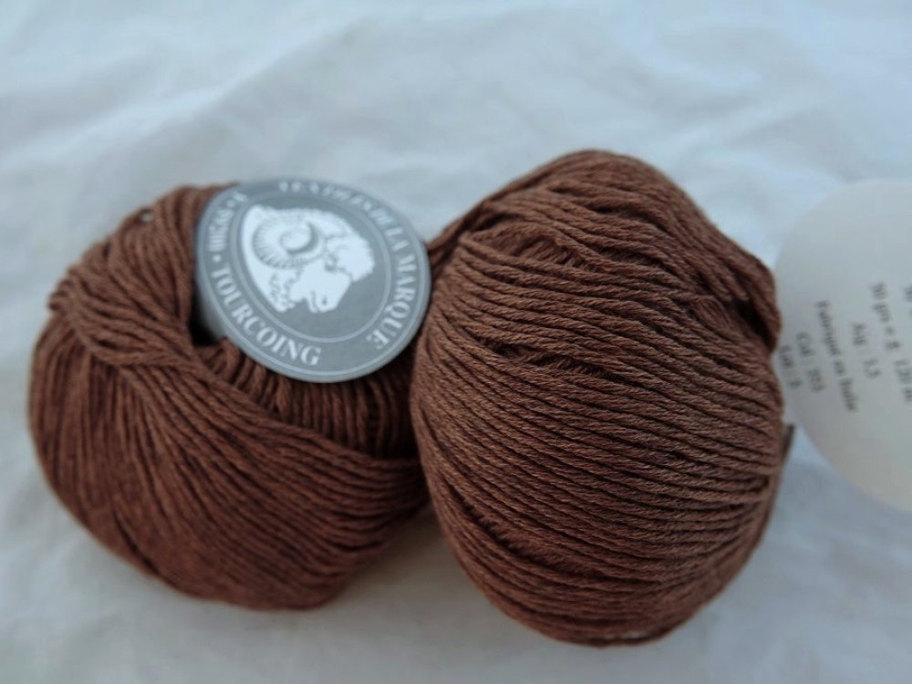 50% Laine Mérinos 5 Pelotes fifty marron 353 textiles de la marque 50% laine mérinos,50 %acrylique