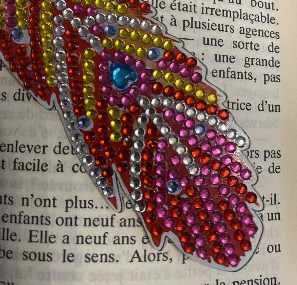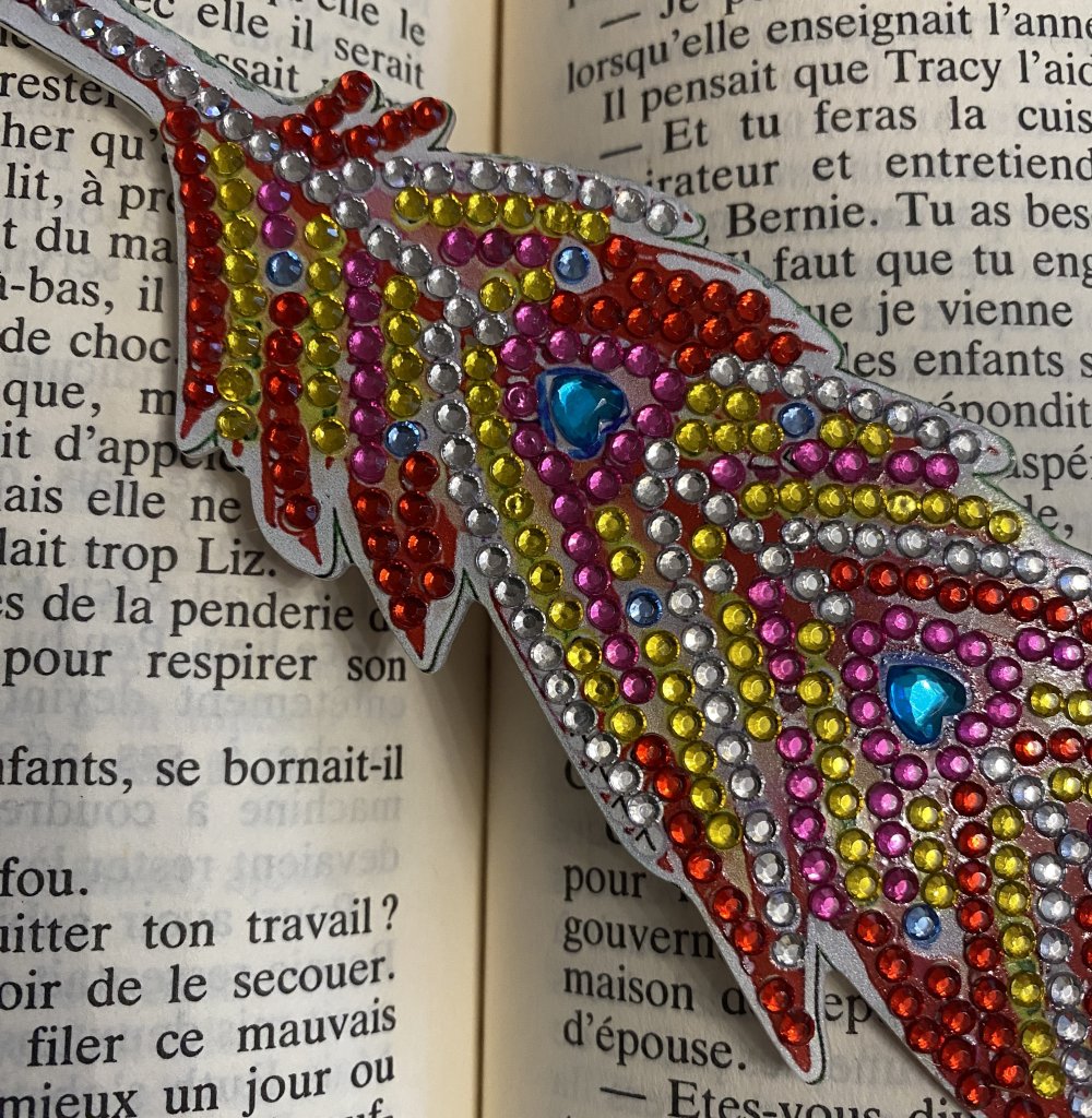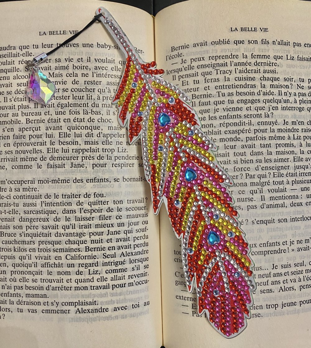 Marque-page Plume Bohème en Diamond Painting, marque-page strass multicolores, scintillant