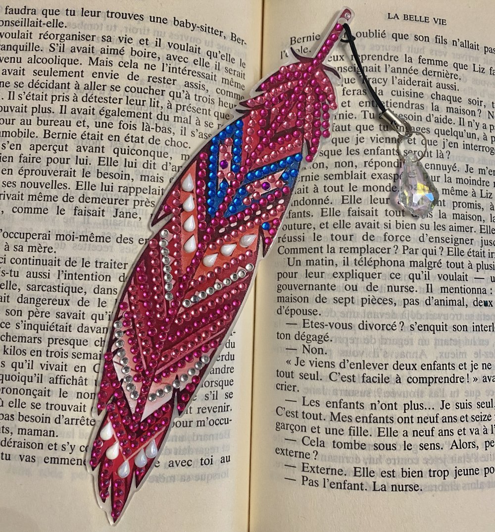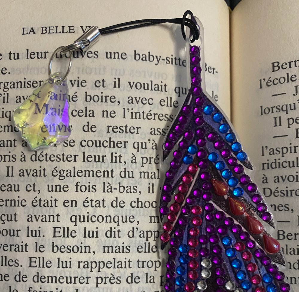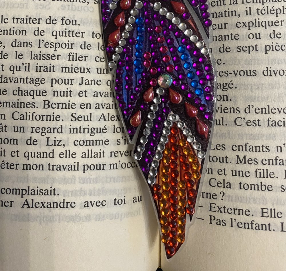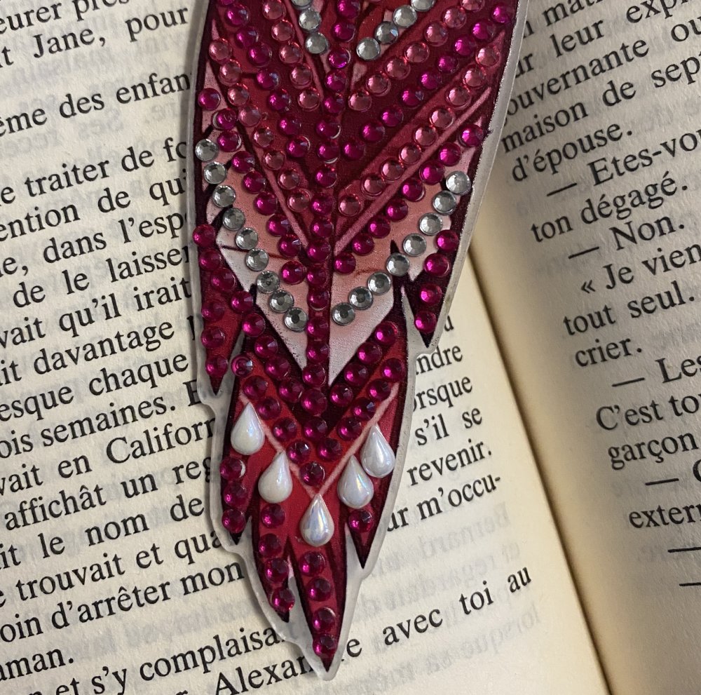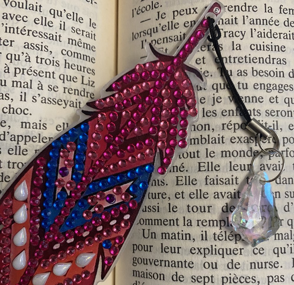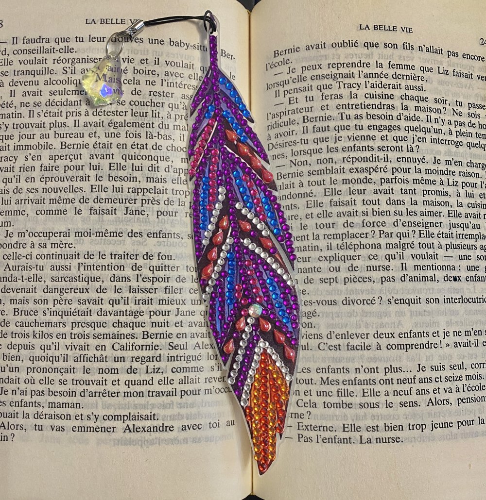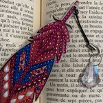 MARQUE-PAGE PLUME BOHEME EN DIAMOND PAINTING, STRASS MULTICOLORES, SCINTILLANTE