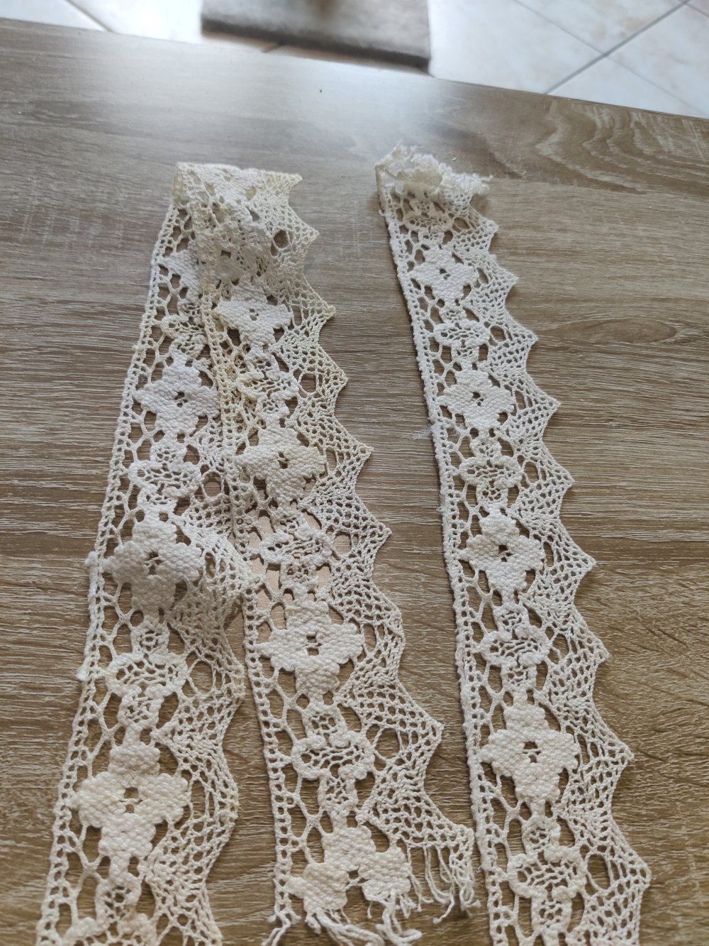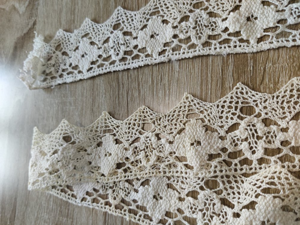 lot de 2 rubans dentelles blanc cassé vintage légèrement jaunies