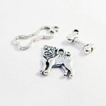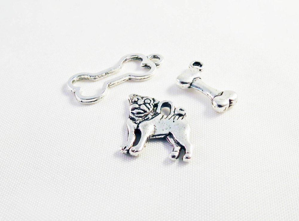 Lot de 3 Pendentifs Breloques Thème Chien Chiot Jouet en Argent Vieilli