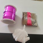 lot de rubans décoratifs en bolduc de couleurs blanc, rouge et fuchsia.
