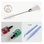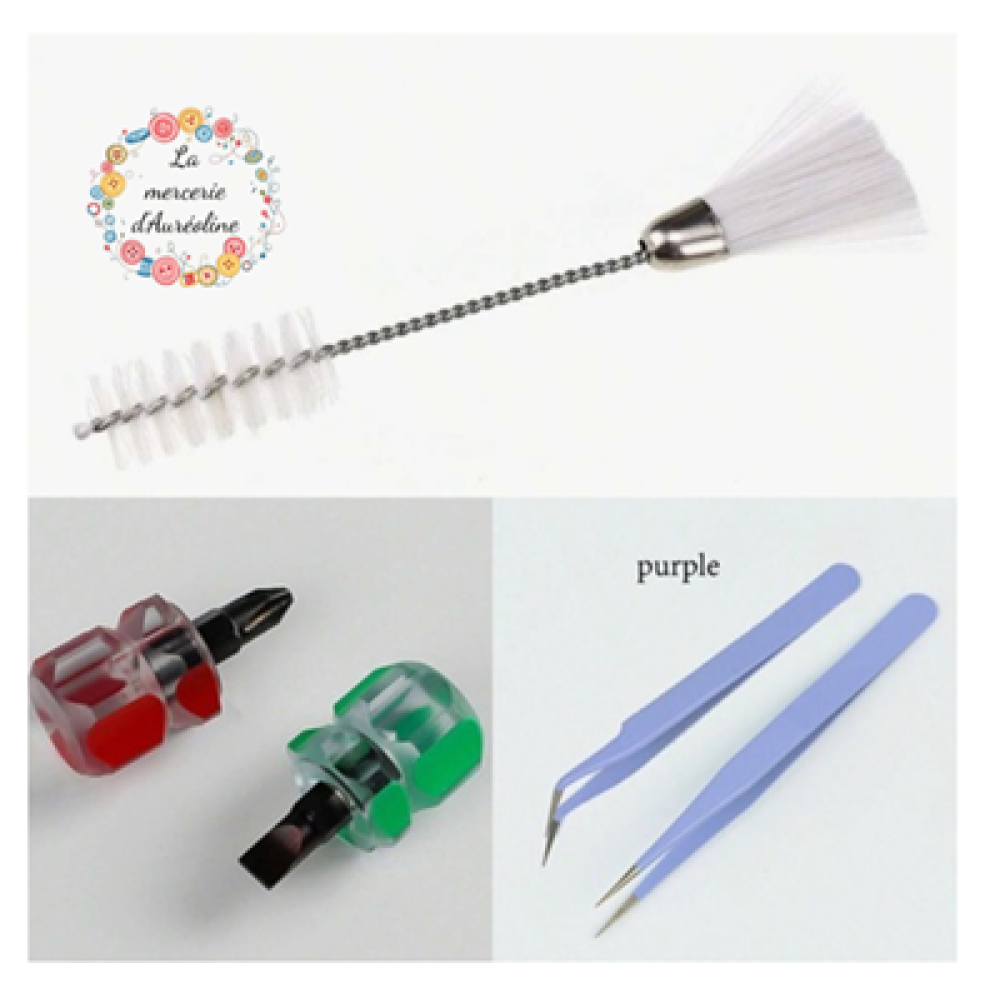 Une brosse de nettoyage à têtes doubles de différentes duretés, utiles pour nettoyer toute la machine à coudre.