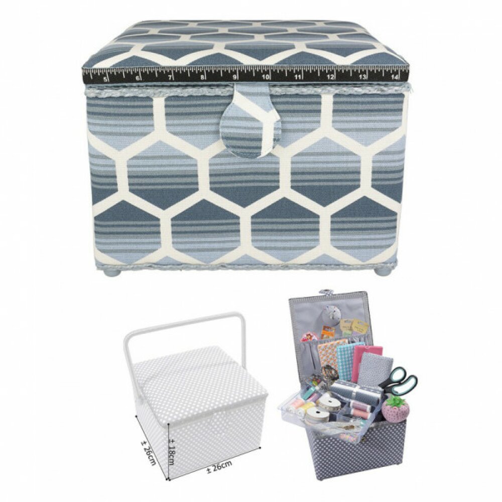 Petite boîte à couture carrée L26xH19cm la rûche bleue
