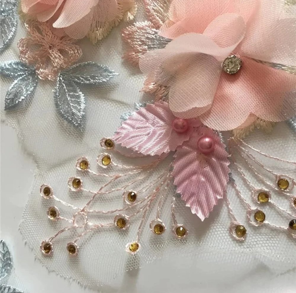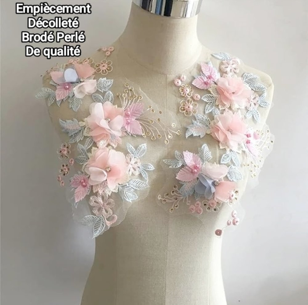 Magnifique empiècement en dentelle perlée brodé haute Couture.
