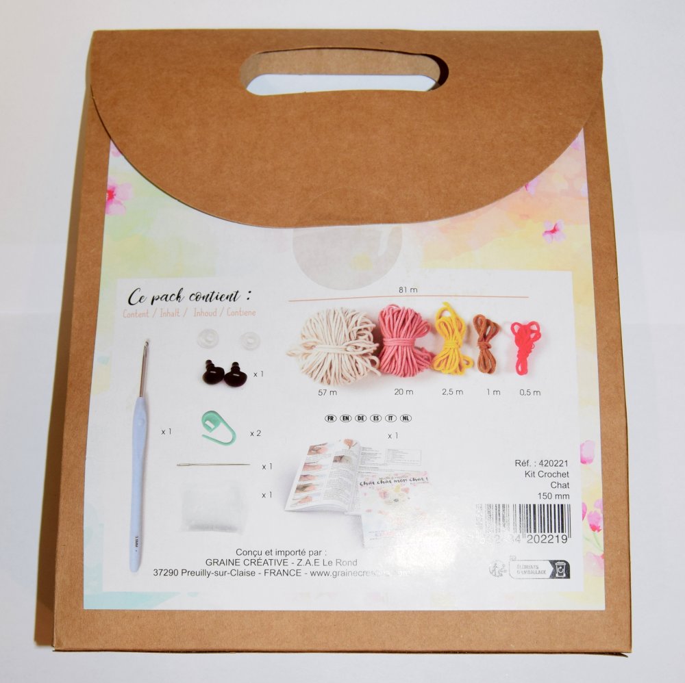 Ce kit est idéal pour apprendre : il contient une notice détaillée, des explications pas à pas, et les points de base du crochet expliqués simplement.