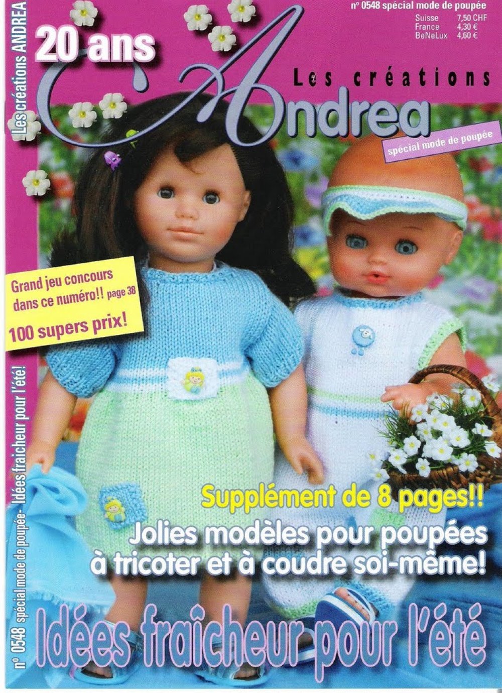 Magazine vintage français Andrea en format PDF.Modeles vêtements et accessoires en tricot pour poupée.Patrons,Tutoriels en français