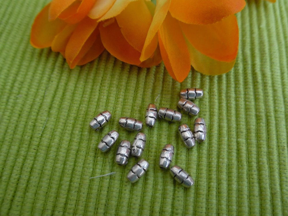 Lot de 10 perles olive rayé noir grain de riz 7.7x4.6mm argent tibétain trou de 1mm