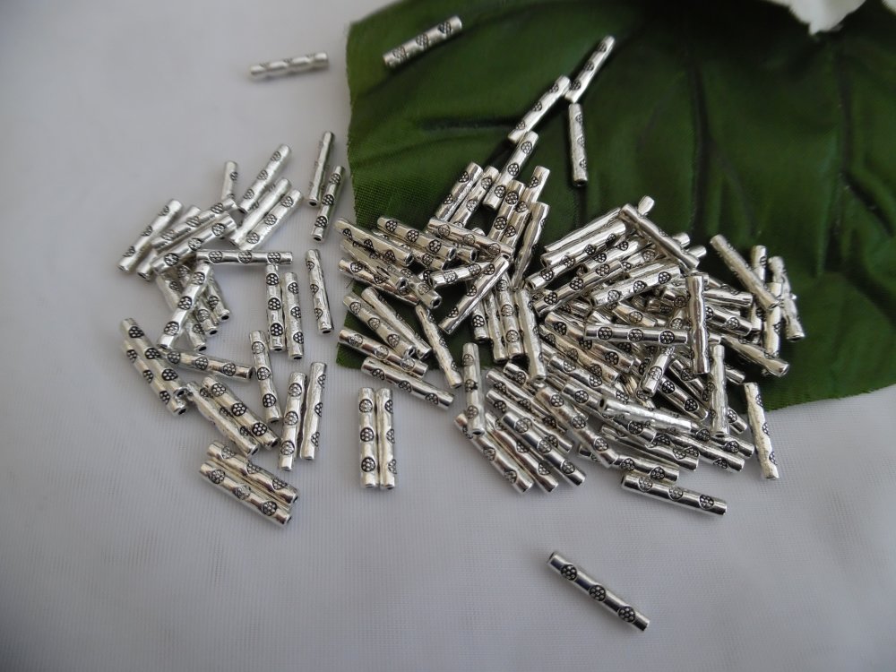 Lot de 10 perles tube ciselée 14.5x2.7mm argent tibétain trou de 0.8mm