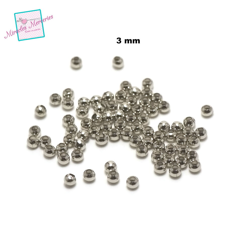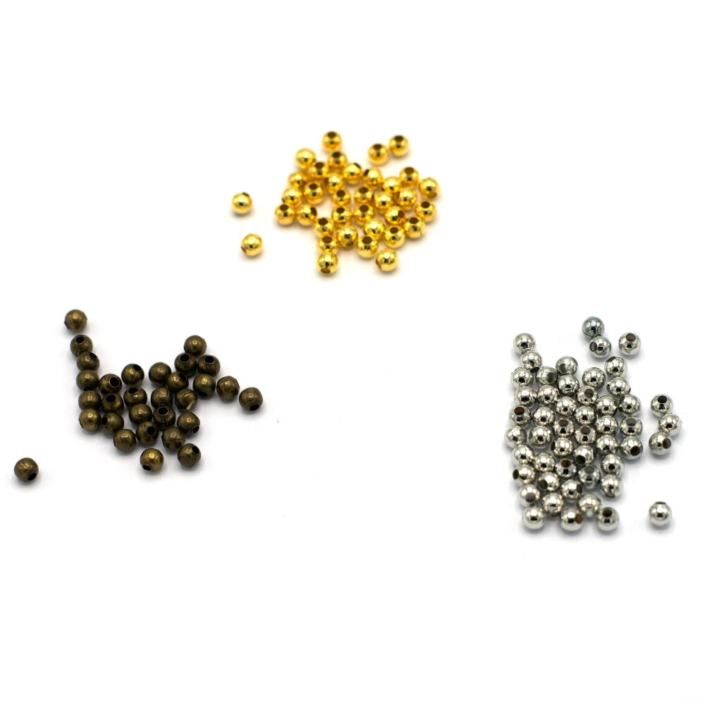 100 petites perles rondes intercalaires 3 mm, argenté / doré / bronze/gun-métal
