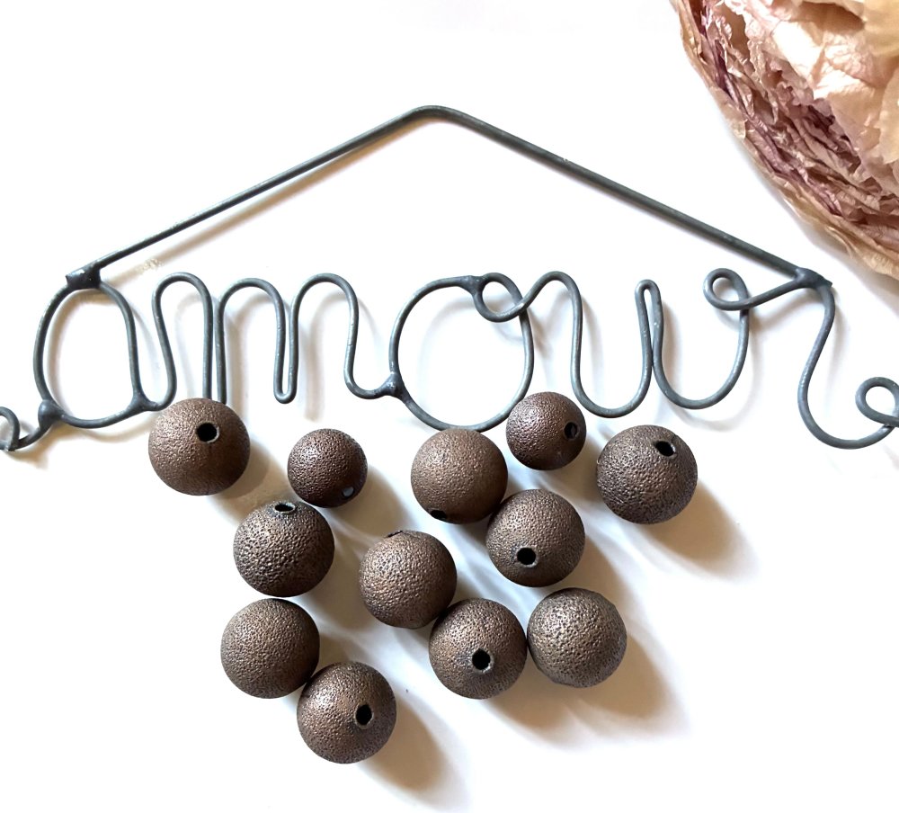 Ce lot est composé de 10 perles rondes percées en métal cuivre 2 tailles = 8 perles diamètre : 10mm et 2 perles 8mm.