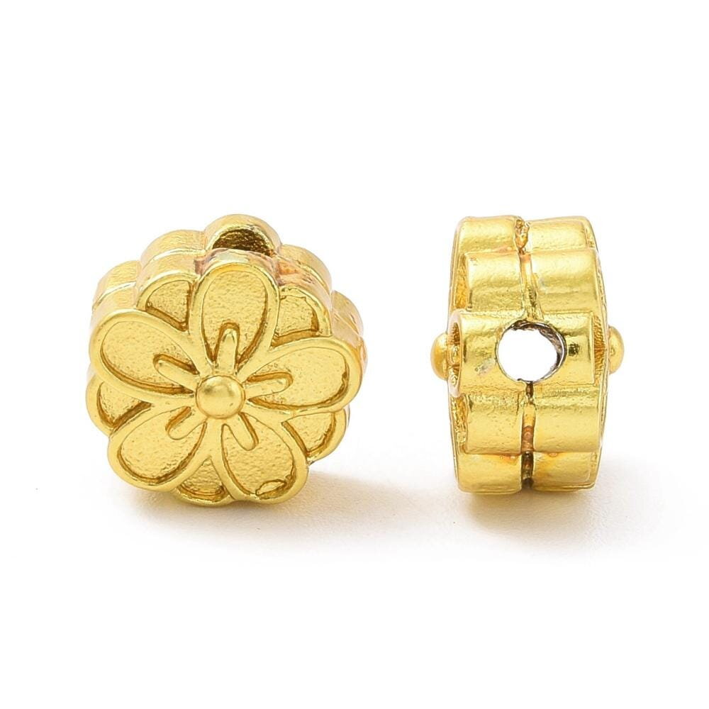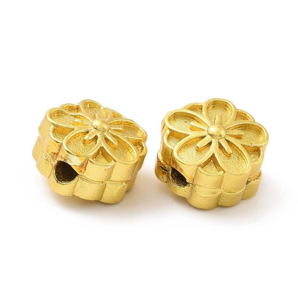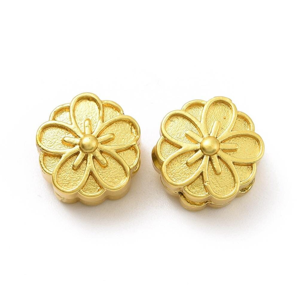 2 Perles fleur doré mat 9,5 mm perle fleur en laiton