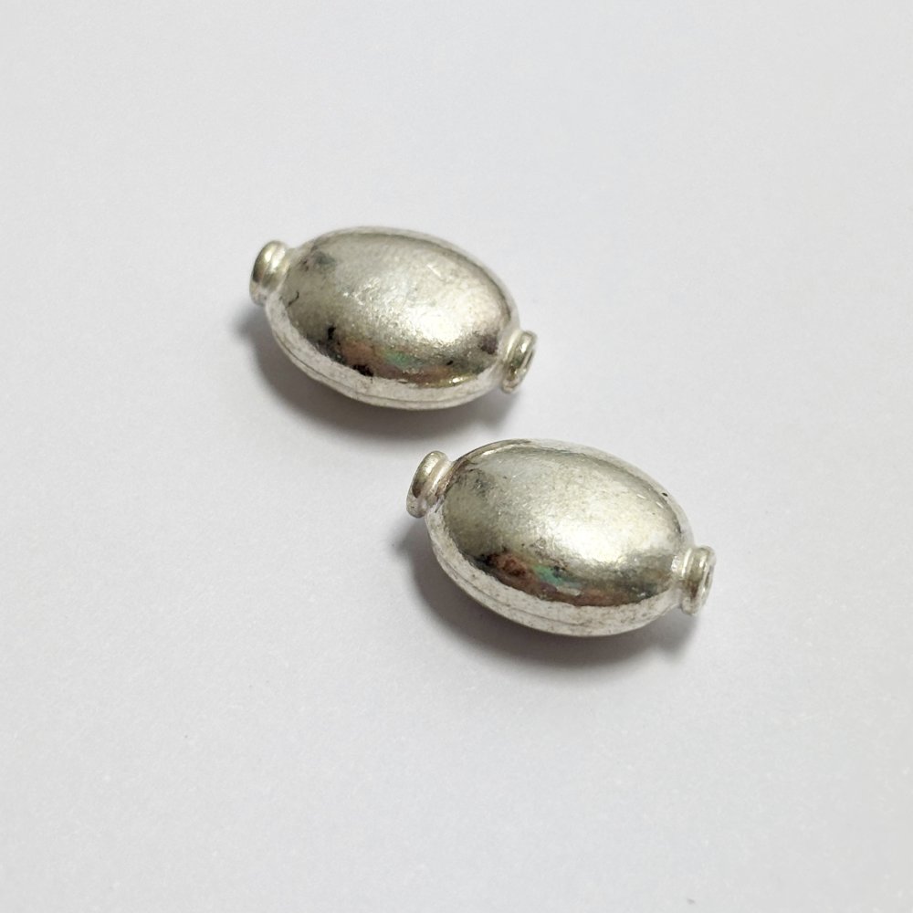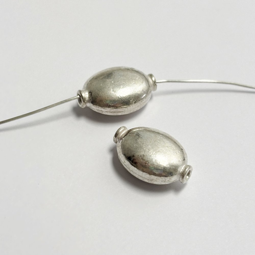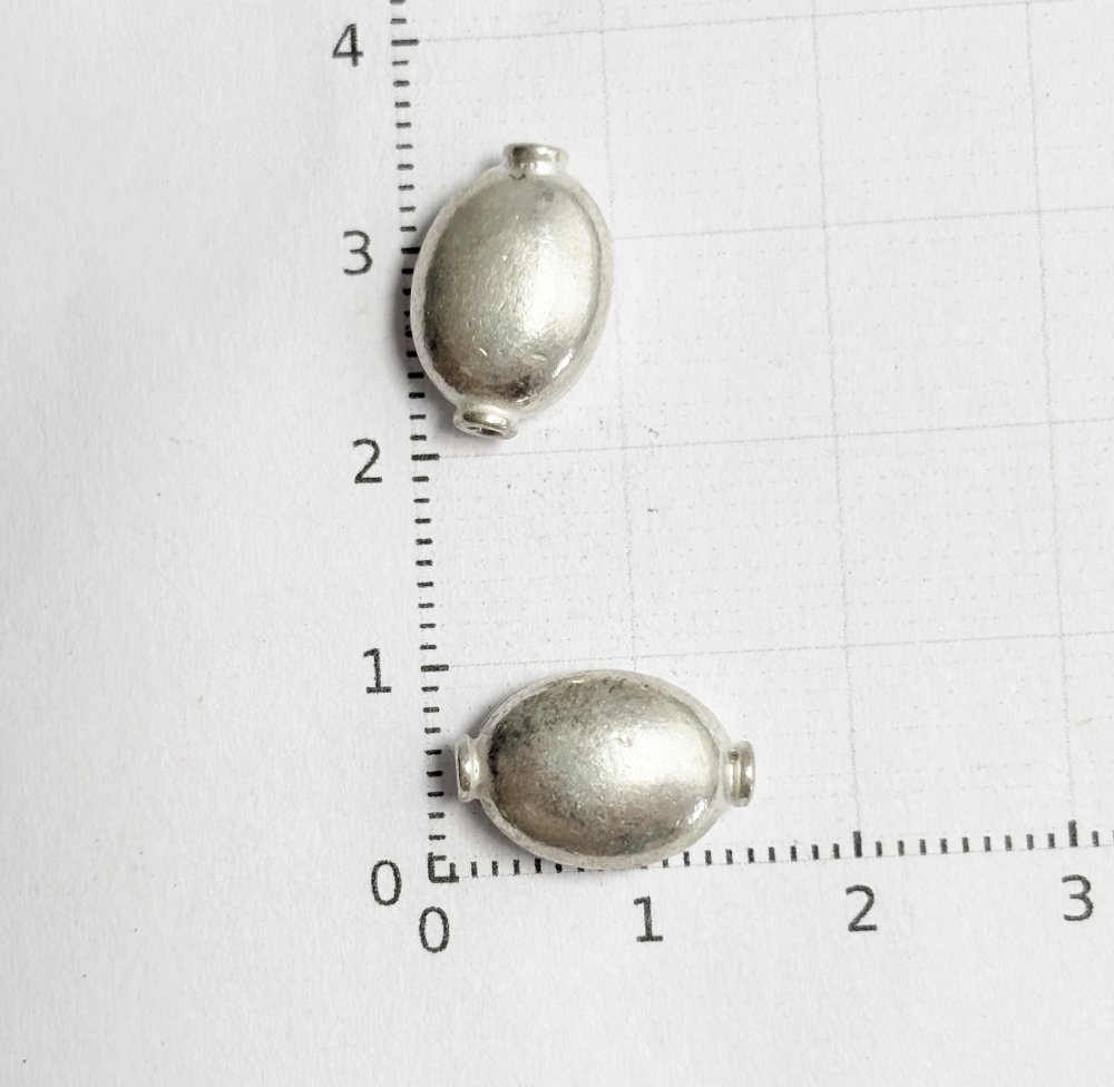 Lot de 2 perles en argent 925/1000, forme ovale bombée, dimensions 13,75 × 9,25 mm, trou 1,45 mm. Poids total 3,20 g. Idéal pour vos créations élégantes de colliers, bracelets ou boucles d’oreilles.