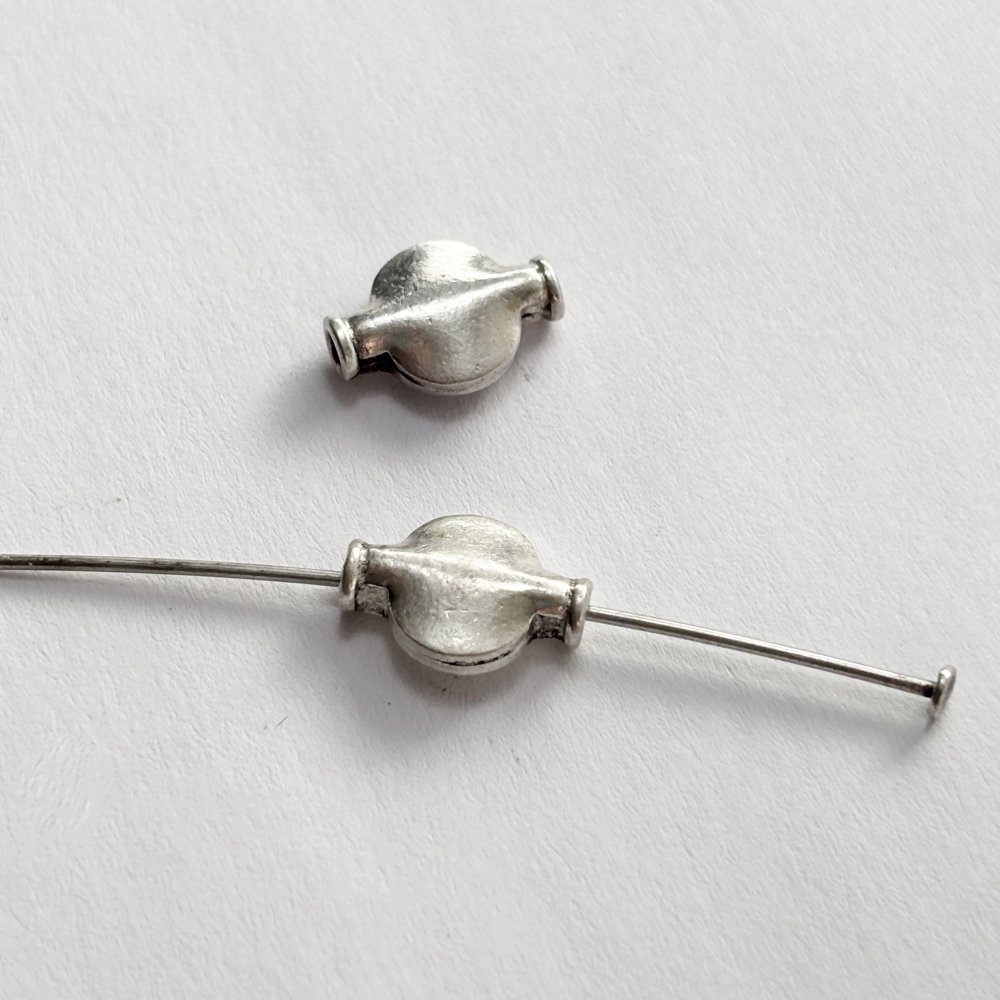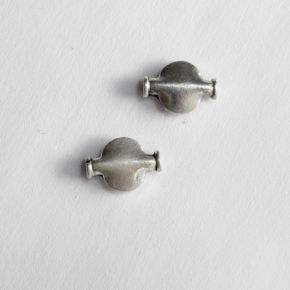 Lot de 2 perles en argent 925 massif, forme tonnellée plate. Élégantes et galbées, elles ajoutent une touche raffinée à vos créations de bijoux. Dimensions 12,46 x 8,9 mm.