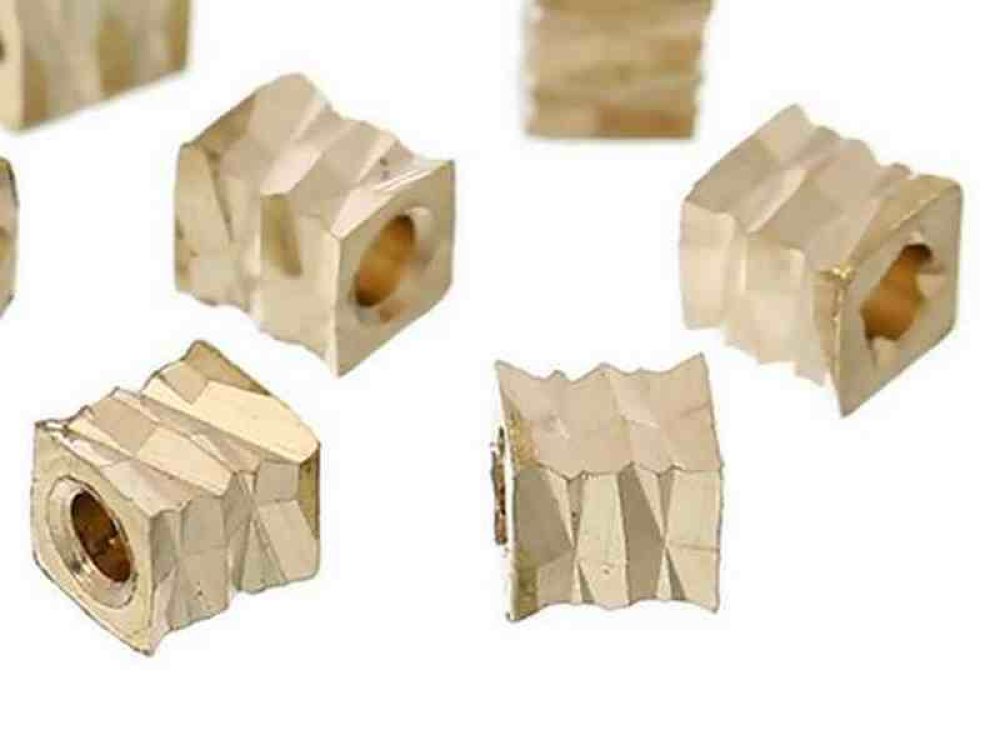 LOT DE 20 PIECES - FORME CUBE SCULPTÉ - INTERCALAIRES - SPACER BEADS - COULEUR DORÉ MAT