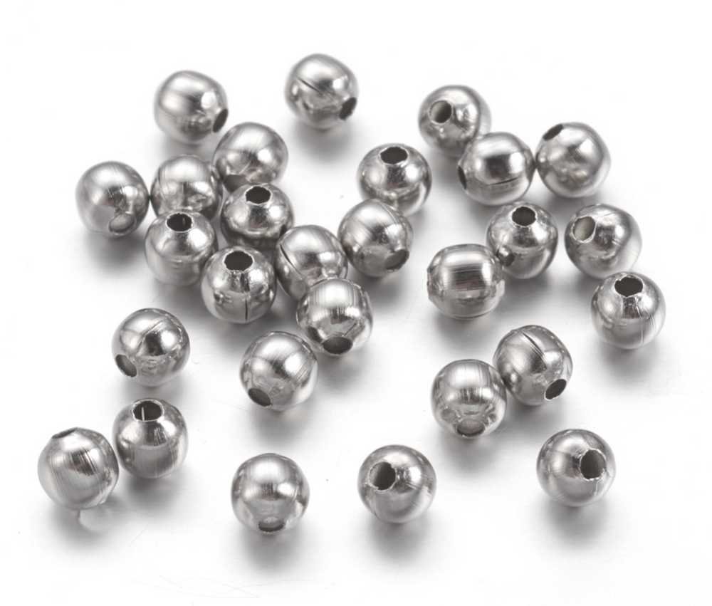 LOT DE 20 PIECES - ACIER INOXYDABLE 304 - INOX - FORME RONDE - INTERCALAIRES - SPACER BEADS - COULEUR ARGENT ACIER