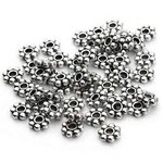 LOT DE 50 PIECES - FORME FLEUR RONDE "DAISY" MARGUERITE - INTERCALAIRES - SPACER BEADS - COULEUR ARGENT VIEILLI - TIBETAN SILVER
