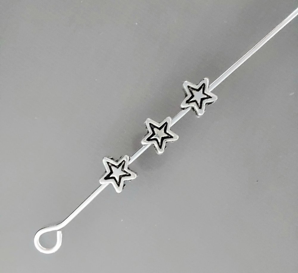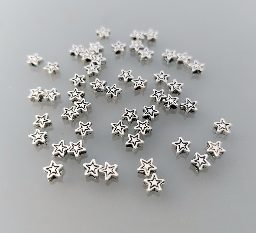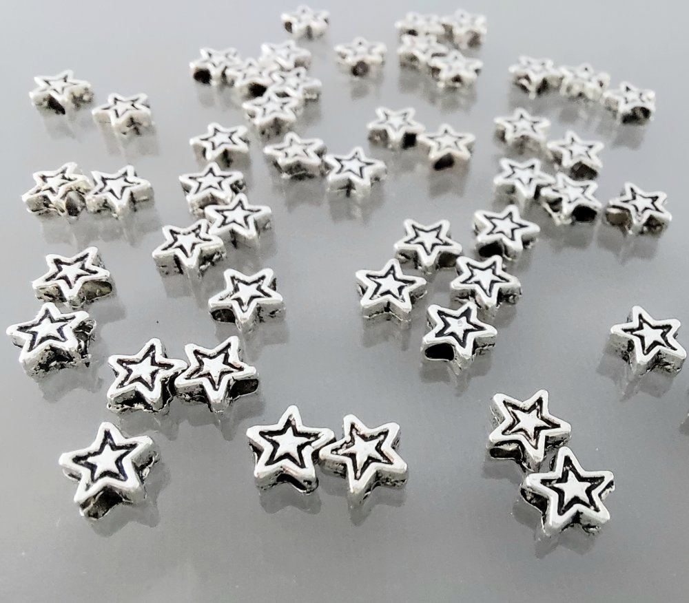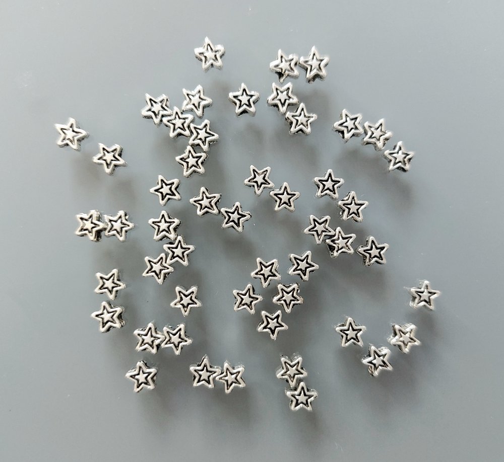 Lot de 50 petites perles en métal de couleur argent noirci.