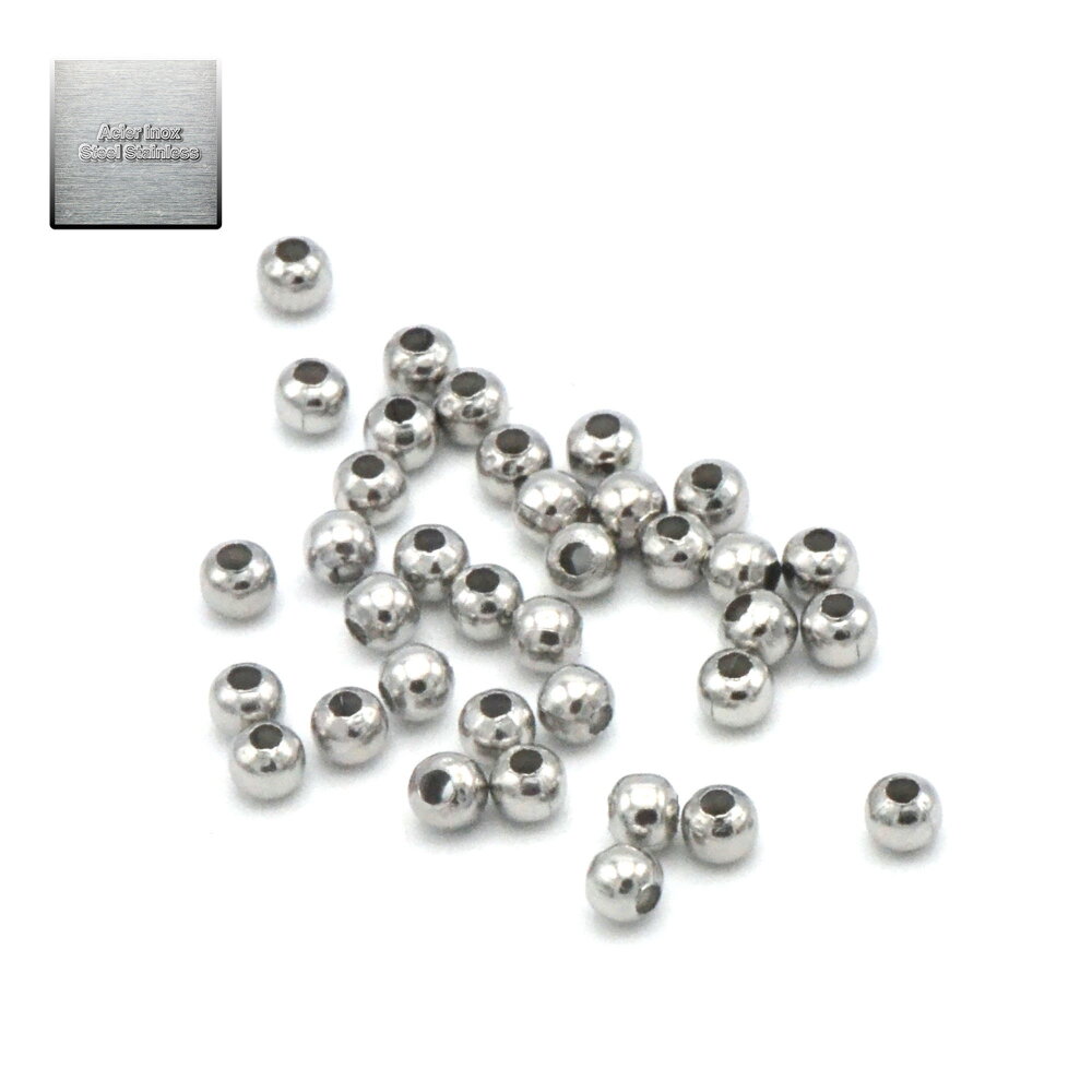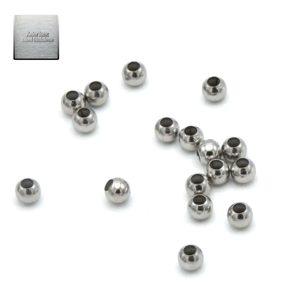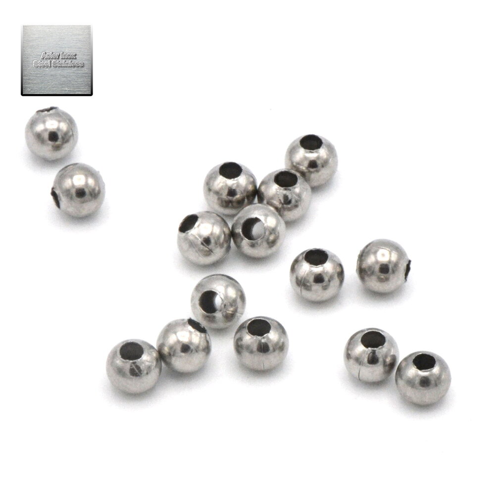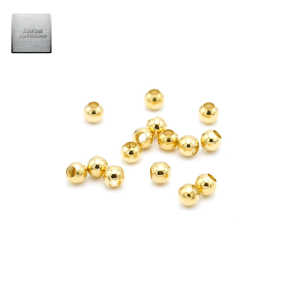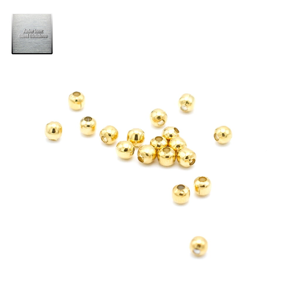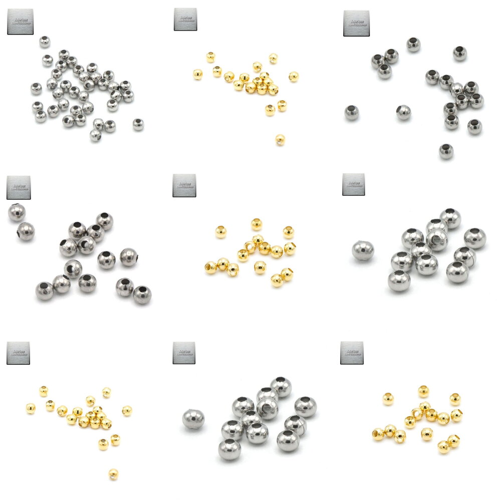 Acier inox: 100 perles "ronde" au choix 3/4/5/6 mm, acier /acier doré